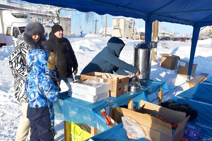 Здесь же работники районного общепита развернули торговлю сувенирами, продукцией собственного производства, в частности свежей выпечкой, мясными, рыбными изделиями, горячим шашлычком, напитками. Очень кстати мухтоловцами было организовано угощение горячим чаем и сладостями. Так что подкрепиться было чем!