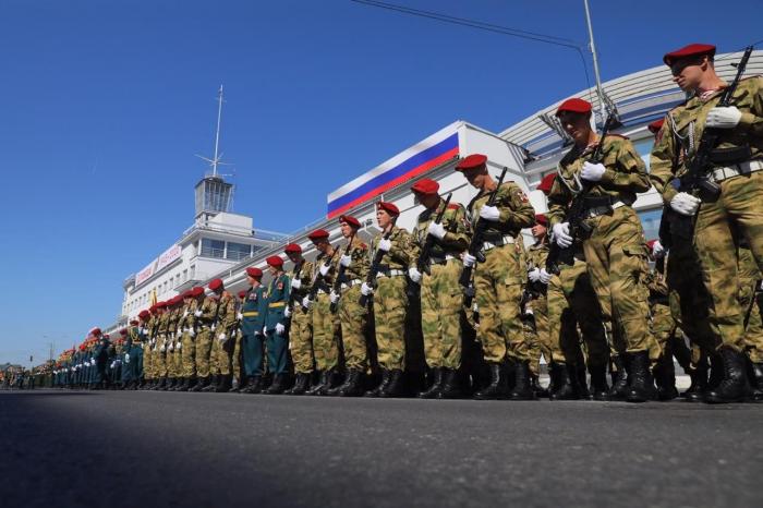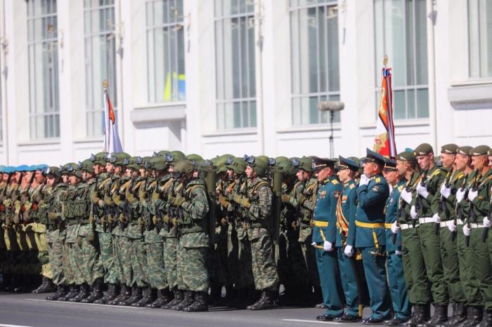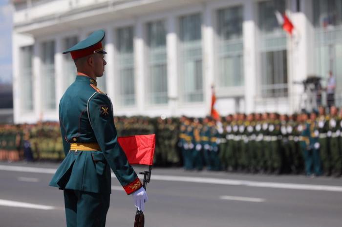 Торжественное мероприятие с участием личного состава и военной техники проходит без присутствия зрителей