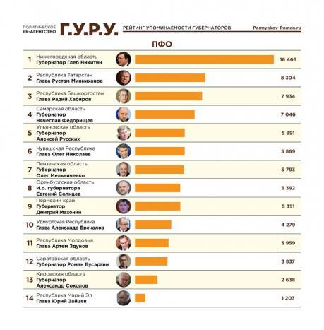 Губернатор Нижегородской области Глеб Никитин по итогам июня стал одним из лидеров рейтинга. Его имя упоминалось в Telegram-каналах 16 464 раза, что позволило ему войти в пятёрку самых цитируемых губернаторов страны. В Приволжском федеральном округе он занял первое место.
