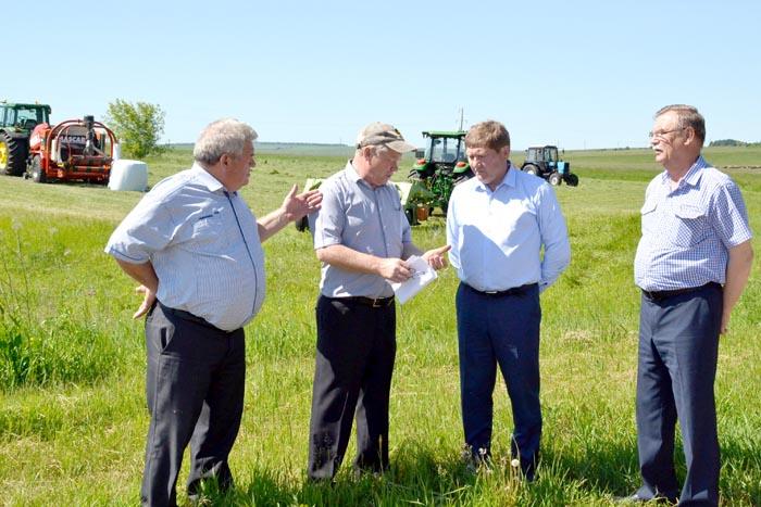 ПЕРВОЕ общение проходило на краю поля, на нем в это время шла уборка многолетних трав по технологии сенаж в упаковке, работала новая импортная техника. Сильным посевам озимых, расположенным на соседнем поле, собравшиеся тоже дали высокую оценку. Николай Константинович поинтересовался у фермера размерами КФХ, объемами налаженного зернового и развивающегося молочного производства, техническим оснащением, кадрами, рынками сбыта сырья, ценами реализации, кредитами и подобным. Живой диалог продолжился и во время осмотра сельхозтехники, инвентаря линейки Джон Дир и других.