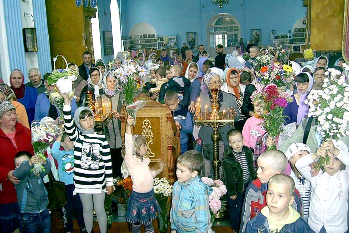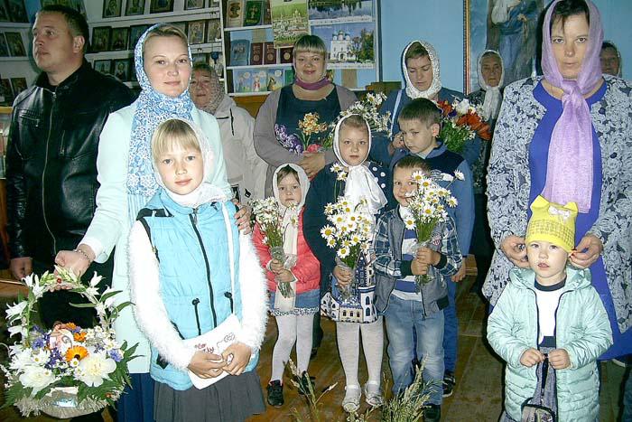 В храме собрались самые маленькие прихожане. Дети с букетами были в притворе, у икон, на лавочках, на нижних ступеньках, ведущих на солею. Очень много было семейных пар, бабушек и дедушек с внуками, и море цветов! «Как на Троицу!» – сказала одна из прихожанок