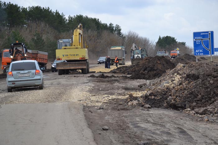 В настоящее время ООО «АрзамасДорРемСтрой» ведет ремонтные работы на федеральной дороге Владимир-Муром-Арзамас. Идет выборка слабых пучинистых грунтов с заменой конструктивных слоев дорожной одежды новыми материалами. Кроме этого, ремонтируются участники дорог Хрипуново-Атемасово, Михеевка-Канерга.