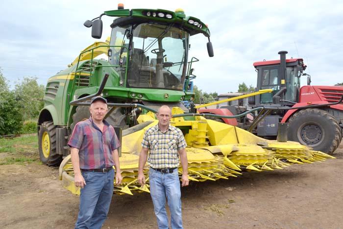 Зеленая и хлебная жатвы стали главными темами разговора с исполнительным директором ООО «Атемасово» Сергеем Александровичем АНОХИНЫМ и главным инженером Владимиром Валерьевичем МИТРОФАНОВЫМ. Встреча с ними прошла на территории гаража, где и находился интересующий нас объект – новенький кормоуборочный комбайн Джон Дир, самый мощный, инновационный и высокотехнологичный в своей линейке.