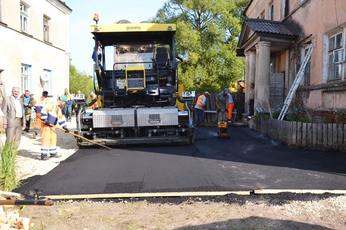 Включился в разговор и В.В. Никонов: «В благоустройстве дворовой территории задействована специализированная дорожная техника ООО «ПМК «Сосновское». Вначале на отведенном участке мы провели подготовительные работы, засыпали площадку щебнем, а сегодня (6 сентября) ее асфальтируем и устанавливаем возле домов лавочки и урны для мусора. Также асфальтируем и подъезд к домам от дороги на Почтовой. Дворовая территория на глазах преображается».