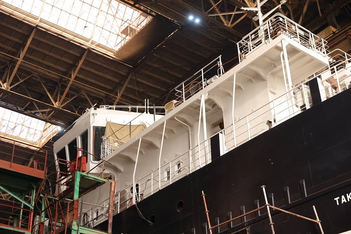 Исполнительный директор ПАО «Завод «Красное Сормово» Сергей Ляшенко представил основные производственные объекты, а также суда, находящиеся на разных этапах строительства. В настоящее время в производственной программе завода «Красное Сормово» серия сухогрузов проекта RSD59, серия круизных судов проекта «Карелия», а также серия краболовов-процессоров КСП01.