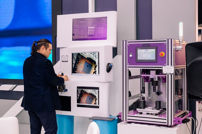 ООО «АВАтэк 3Д» презентовал электромеханический пресс с функцией автоматического контроля наличия детали, усилия и глубины запрессовки, это полностью отечественная разработка. Экспонат может использоваться в любом машиностроительном производстве.
