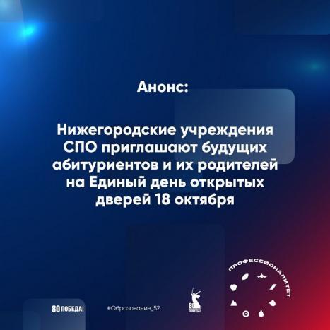 Нижегородские колледжи и техникумы-участники проекта «Профессионалитет» приглашают на Единый день открытых дверей