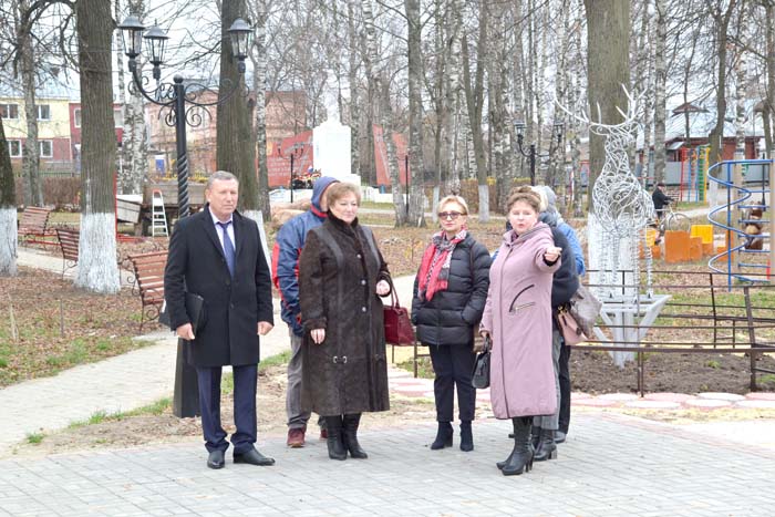 М.А. Мякишевой осмотрела преображающуюся территорию парка райцентра и дала высокую оценку тому, как в ходе реализации проекта «Формирование комфортной городской среды» национального проекта «Жилье и городская среда» создается общественное пространство «Семь+я».