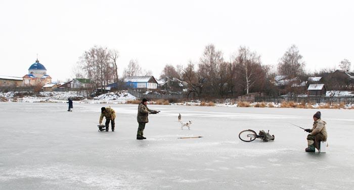 Погода нынче крайне неустойчива: зимний минус меняется на весенний плюс, с неба падает то снег, то дождь, то ярко светит и, надо отметить, хорошо пригревает солнце. Лед на водоемах еще стоит и кажется на вид крепким.
