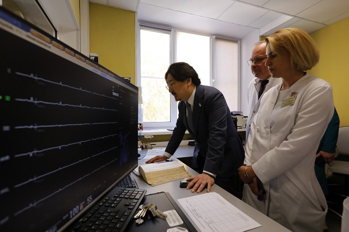 В Нижегородской областной клинической больнице имени Н.А. Семашко гостю представили возможности одного из трех действующих региональных сосудистых центров. Здесь оказывают неотложную и высокотехнологичную помощь больным с острым коронарным синдромом и острым нарушением мозгового кровообращения.