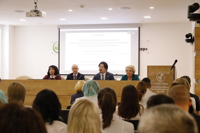 Бадма Башанкаев и специалисты онкодиспансера подключились к межрегиональной видеоконференции по технологиям диагностики и лечения злокачественных новообразований. Мероприятие организовал НМИЦ радиологии Минздрава России, в конференции принял участие генеральный директор учреждения, главный внештатный специалист-онколог Минздрава России, академик РАН Андрей Каприн.