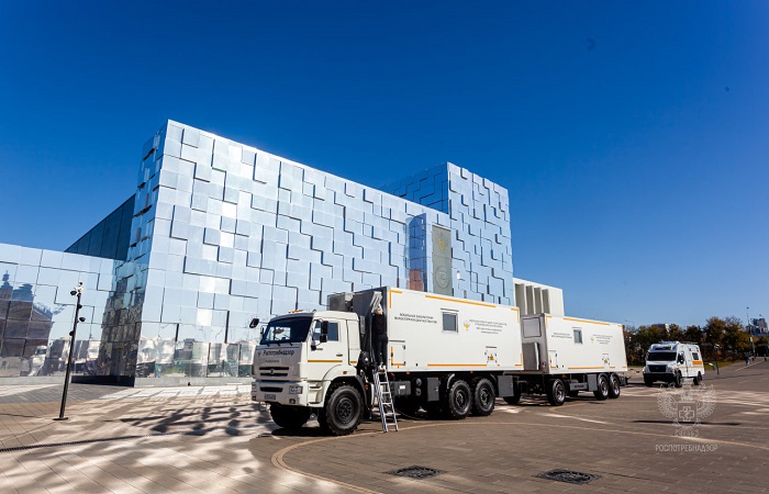 Роспотребнадзор также создал сеть исследовательских центров за рубежом: в Бурунди, Венесуэле, Вьетнаме и Гвинее. Шесть мобильных клиник и 35 мобильных лабораторий, разработанных Роспотребнадзором, переданы в 14 стран мира. В дружественные страны поставлено 3 тыс. единиц лабораторного оборудования.