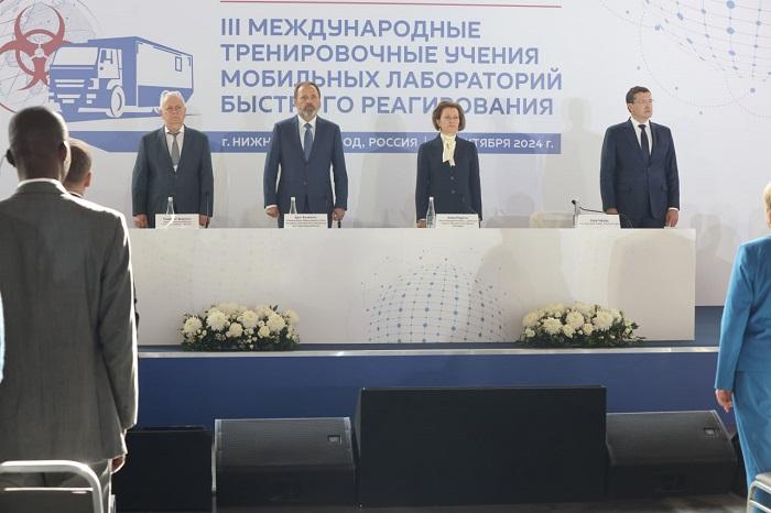 2 октября в Нижнем Новгороде руководитель Роспотребнадзора Анна Попова дала старт III Совместным международным учениям команд быстрого реагирования на чрезвычайные ситуации санитарно-эпидемиологического характера. В торжественной церемонии открытия учений приняли участие полномочный представитель президента РФ в Приволжском федеральном округе Игорь Комаров и губернатор Нижегородской области Глеб Никитин.