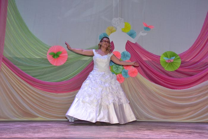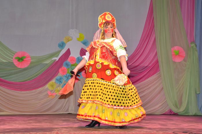 Третий этап конкурсной программы «Косплей» получился, пожалуй, самым зрелищным. Участницы переоделись в костюмы персонажей, которых выбрали сами, и придумали их защиту. Ольга Протасова перевоплотилась в яркую Марфушеньку-душеньку. Елена Борисова предстала в образе утонченной Мэри Поппинс. Марина Баландина нарядилась прелестной Красной Шапочкой и отнесла корзинку с пирожками жюри. Вера Романова выбрала образ императрицы Екатерины Великой и очень органично, на мой взгляд, в нем смотрелась. Марина Козлова замечательно изобразила Золушку, превратившуюся благодаря крестной фее в принцессу. А Надежда Куприянова перевоплотилась в нежную Дюймовочку. Завершили конкурсную программу «девчата» дефиле-флешмобом.
