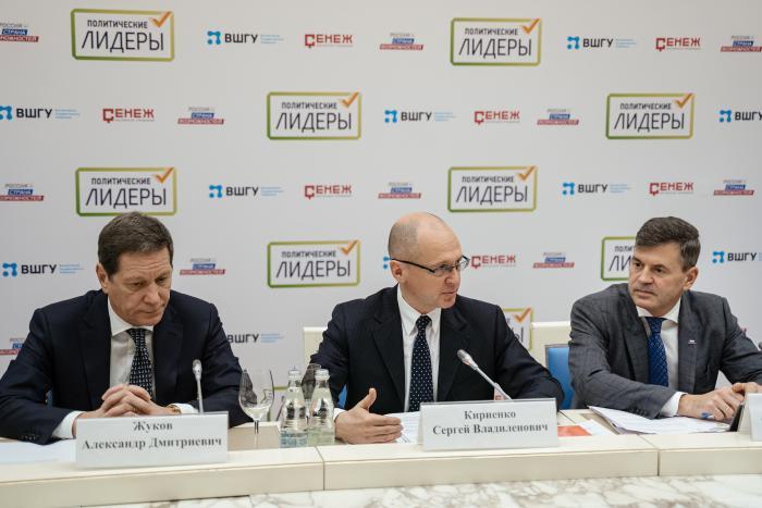 В нем приняли участие Первый заместитель Руководителя Администрации Президента РФ Сергей Кириенко, первый заместитель председателя Государственной Думы, член Высшего совета партии «Единая Россия», наставник Всероссийского Конкурса «Лидеры России. Политика» Александр Жуков, заместитель председателя Государственной Думы, наставник Конкурса Алексей Гордеев, заместитель председателя Государственной Думы, председатель Центральной контрольной комиссии партии «Единая Россия», наставник Конкурса Ирина Яровая, член Совета Федерации и Высшего совета партии «Единая Россия», наставник Конкурса Анатолий Артамонов, Первый заместитель председателя комитета Государственной Думы по экономической политике, промышленности, инновационному развитию и предпринимательству, заместитель руководителя фракции «Справедливая Россия» в ГосударственнойДуме, наставник Конкурса Валерий Гартунг, Председатель комитета Государственной Думы по физической культуре, спорту, туризму и делам молодежи, наставник Конкурса Михаил Дегтярев, Председатель комитета Совета Федерации по конституционному законодательству и государственному строительству, наставник Конкурса Андрей Клишас, член Совета Федерации, член Наблюдательного совета Конкурса Владимир Лукин, Председатель комитета Государственной Думы по бюджету и налогам, член Высшего совета партии «Единая Россия», наставник Конкурса Андрей Макаров, первый заместитель генерального директора ТАСС, член Наблюдательного совета Конкурса Михаил Гусман, генеральный директор и главный редактор «Независимой газеты», член Наблюдательного совета Константин Ремчуков, Президент НИИ неотложной детской хирургии и травматологии, член Наблюдательного совета Леонид Рошаль, председатель Экспертного совета Конкурса Павел Безручко и генеральный директор АНО «Россия — страна возможностей» Алексей Комиссаров.
