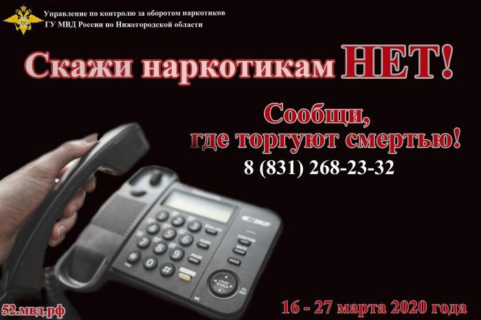 В период с 16 по 27 марта 2020 года на территории Нижегородской области будет проходить первый этап Общероссийской акции «Сообщи, где торгуют смертью».