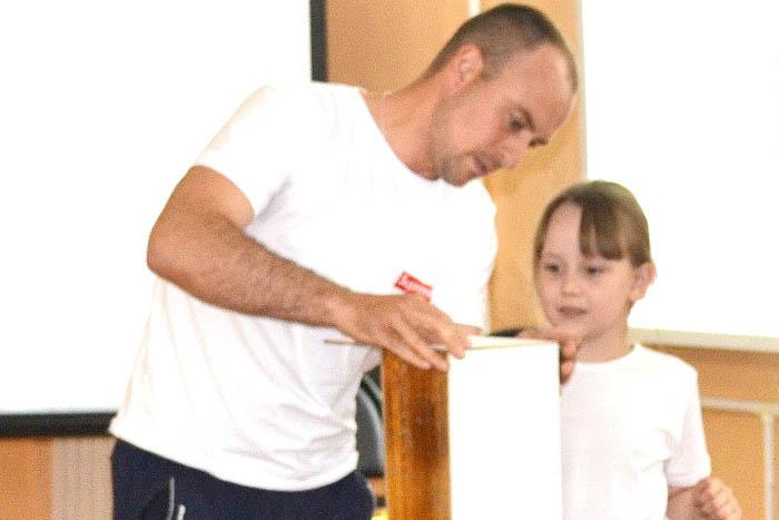 Мероприятие началось с представления домашнего задания – визитной карточки, демонстрирующей роль отца в семье. Команды «Папа и ребенок» соревновались в интеллектуальных, творческих, спортивных, бытовых конкурсах, и отцы настойчиво подтверждали титул «СуперПапы». Вместе с детьми отвечали на вопросы викторины, мастерили скворечник, рисовали букет для мамы, а еще выполняли сложное задание – делали прически для любимых дочек.