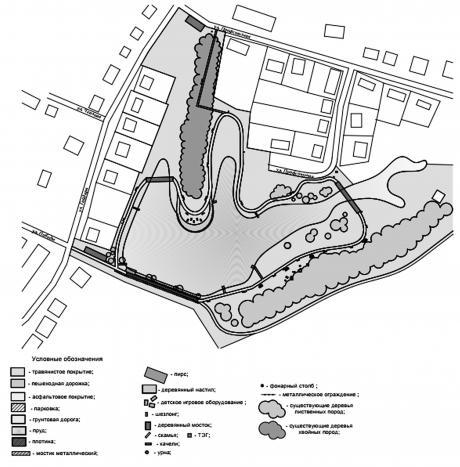 В ходе реализации проекта планируется обустроить пешеходную и велодорожку с асфальтовым покрытием; установить фонари, лавочки и урны, качели, детское игровое оборудование, видеонаблюдение. Будут сооружены пешеходные перекидные мосты и мостики для подхода к воде и рыбной ловли. Предполагается также выполнить ограждение вдоль плотины, которая будет укреплена и заасфальтирована. Планируется также частичная очистка пруда за счет средств, выделенных из бюджета района.