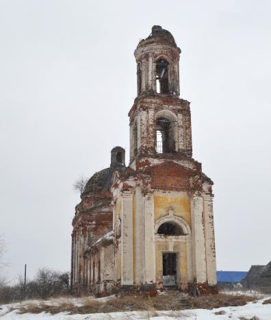 Храм построен в 1827 году. Высокий, каменный, рассчитанный на большой приход, да и село в свое время было не маленькое. В богоборческие годы, лихие 30-е, от храма остались развалины. Нет окон, дверей, полов… Сегодня это напоминает о человеческом безумии и святотатстве. На месте разрушенного храма, по словам святых отцов, невидимый Ангел Хранитель продолжает совершать службу.