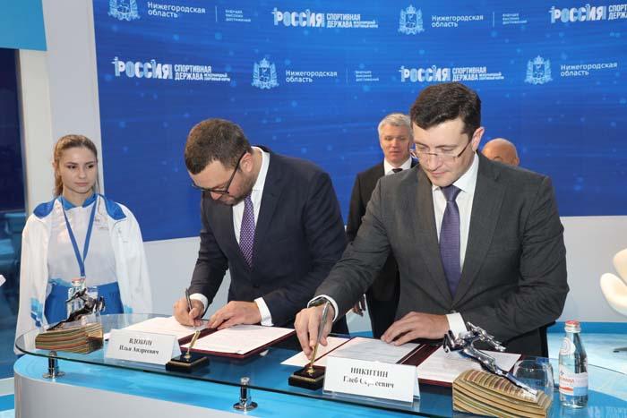 Сегодня губернатор Нижегородской области Глеб Никитин и президент Федерации скейтбординга России Илья Вдовин подписали соглашение о сотрудничестве. Церемония подписания прошла в рамках форума «Россия – спортивная держава».