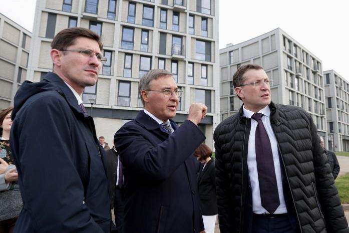 Губернатор Нижегородской области представил министру результаты реализации первого этапа строительства кампуса. Валерий Фальков осмотрел 18 первых корпусов общежития кампуса на 1 359 мест. Студенческий городок включает комфортабельные комнаты, зоны для самостоятельных занятий, общественные пространства, подземный паркинг и другую сопутствующую инфраструктуру для обеспечения комфортной жизни студентов.