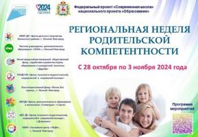 Более 4 000 нижегородцев приняли участие в мероприятиях первой региональной «Недели родительских компетенций», которая прошла с 28 октября по 3 ноября 2024 года в Нижегородской области. Проект нацелен на укрепление института семьи и духовно-нравственных традиций семейных отношений, развитие позитивного и ответственного отношения нижегородцев к воспитанию детей. Он реализуется в рамках регионального плана мероприятий по проведению Года семьи.