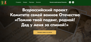 В Год защитника Отечества и в канун 80-летия Победы в Великой Отечественной войне Комитет семей воинов Отечества (КСВО) дал старт проекту «Помню твой подвиг, родной! Дед у меня за спиной!». Принять участие в проекте могут участники и ветераны специальной военной операции, чьи деды или прадеды отстояли свободу и независимость Родины в Великой Отечественной войне. Для этого необходимо заполнить форму на сайте проекта: https://помнютвойподвиг.рф и рассказать о том, в каких боях участвовал дедушка, где он служил и какие награды имеет, и обязательно поделиться историей об участнике СВО, прямом потомке деда или прадеда, который сейчас защищает нашу страну.